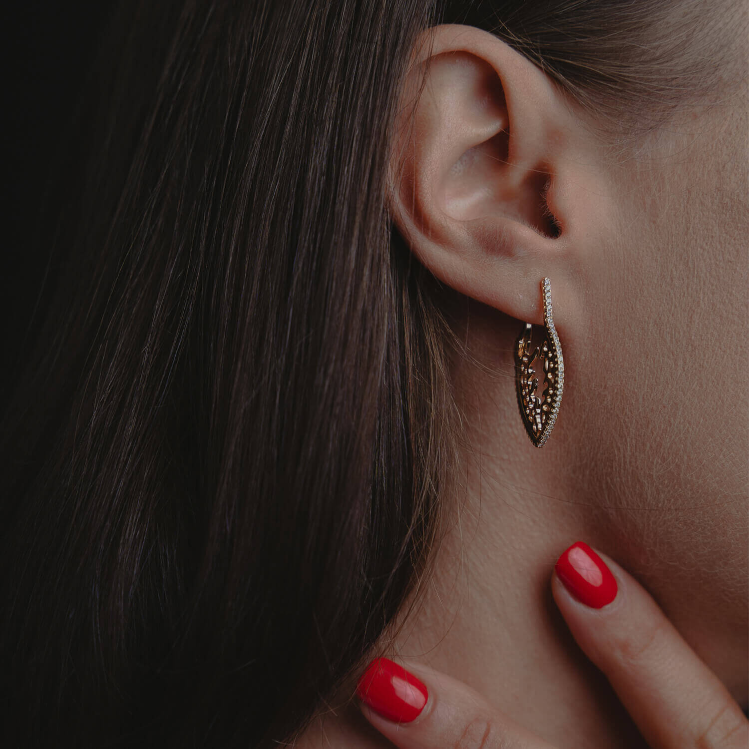 Cercei lungi cu un design elegant, ce pot complimenta o personalitate unica si orice tip de tinuta. Sunt finisati prin placare cu aur de 18 k in multiple straturi, ceea ce le garanteaza rezistenta si calitate timp indelungat (2-3% aur), si pietre de zirconiu de cea mai inalta calitate.